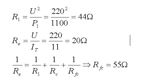 Să se calculeze rezistenţa fierului de călcat, ştiind că prin circuit trece un curent total IT  = 11 A.