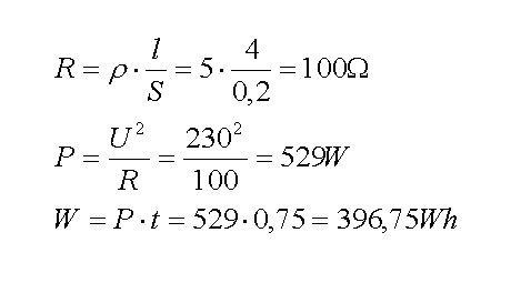 1. Un fier de călcat electric funcţionează un timp t = 45 minute la tensiunea de U = 230 V. Firul interior al rezistenţei sale are lungimea l = 4 m, secţiunea s = 0,2 mmşi rezistivitatea ρ = 5 Ω mm2/m.
