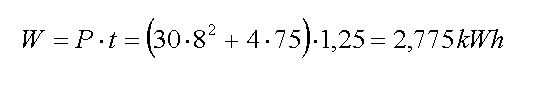 2.  Un consumator consumă energie electrică prin utilizarea unei plite electrice cu rezistenţa de 30 Ω ce absoarbe un curent electric de 8 A  şi a 4 lămpi  cu incandescenţă a câte 75 W, funcţionând toate timp de o oră şi 15 minute. Să se determine energia electrică totală consumată de acest consumator în intervalul de timp menţionat.