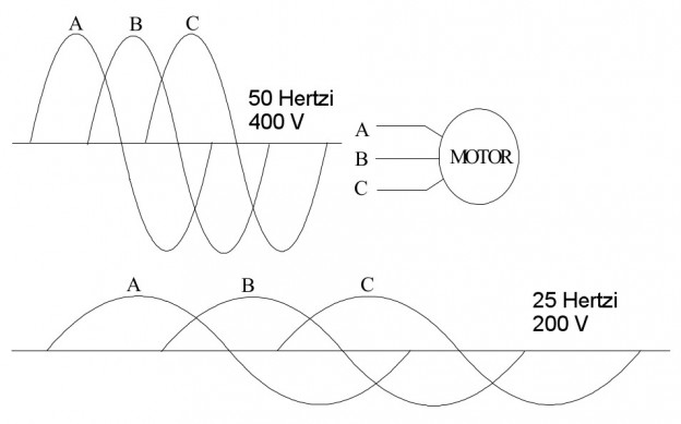 La viteza nominala (de obicei 50 sau 60 Hz) motorul are nevoie de tensiune nominala. Pentru a obtine jumatate din viteza va fi nevoie de jumatatea frecventei si jumatatea tensiunii.