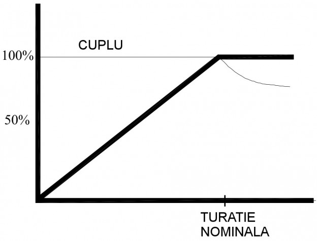 Linia ingrosata reprezinta puterea disponibila. La jumate din viteza, cu toate ca este furnizat cuplu constant, motorul dezvolta doar jumatate din putere.