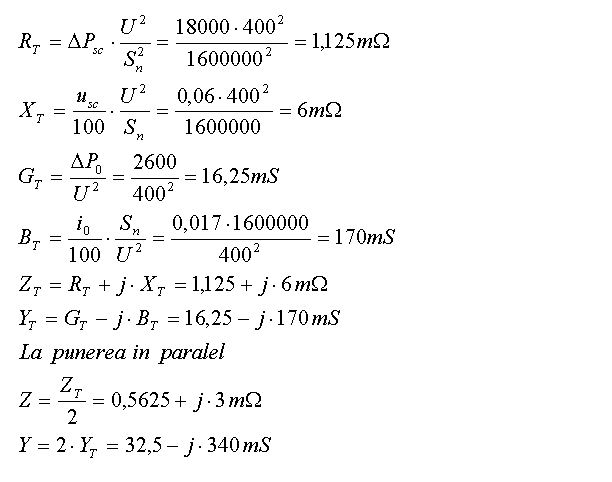 - Un post de transformare care alimentează un consumator este echipat cu două transformatoare trifazate identice, de 1600 kVA, 6/0,4 kV, având fiecare: