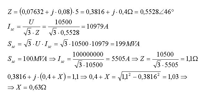 Să se calculeze valoarea curentului de defect şi reactanţa minimă a unei bobine de reactanţă care ar trebui montată pentru limitarea puterii de scurtcircuit la cel mult 100 MVA.