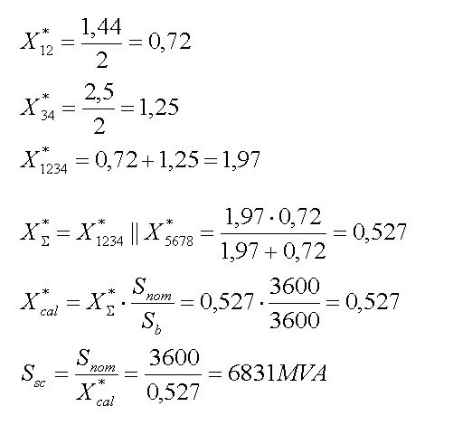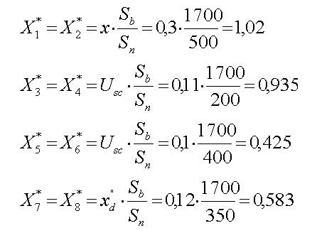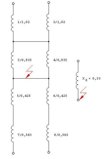 Schema echivalenta si valorile reactantelor relative vor fi: