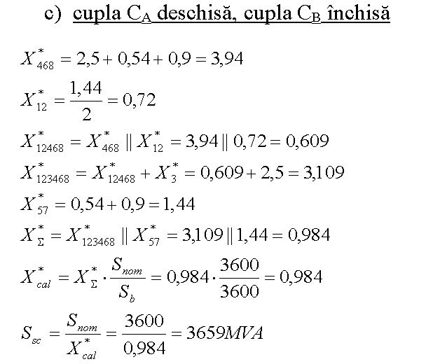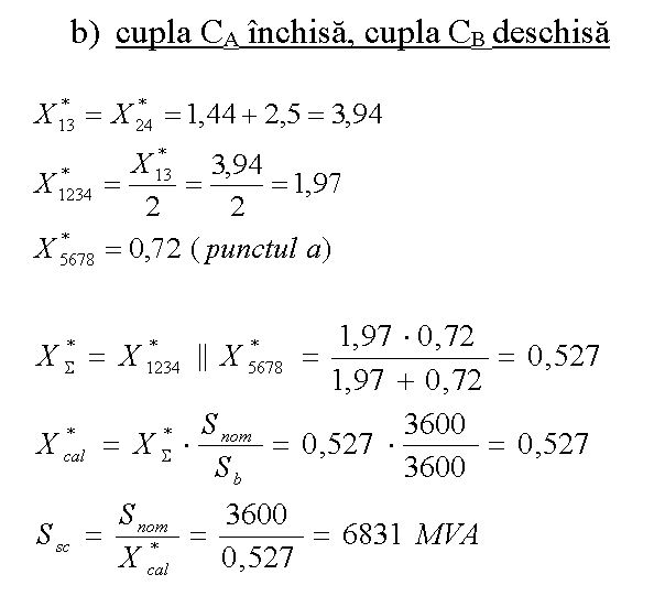 Se observa egalitatea puterilor de scurtcircuit in cazurile a) si b). Acest lucru era previzibil deoarece curentul care circula prin cupla CB in cazul a) era nul.