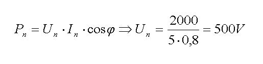 - Pe plăcuţa unui electromotor monofazat sunt trecute următoarele date: Pn = 2 kw, In = 5 A, cos jn = 0,8. Să se determine tensiunea nominală la care lucrează acest electromotor.