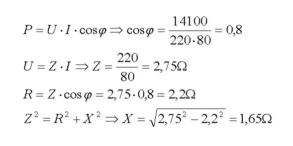 - Pe tabloul de distribuţie al unui consumator sunt montate : un voltmetru, un ampermetru şi un wattmetru, care indică: 220 V, 80 A şi respectiv 14,1 kW. Să se determine factorul de putere, impedanţa, rezistenţa activă şi reactanţa circuitului.