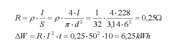 b) pierderea de energie electrică prin încălzire, dacă prin conductor trece un curent electric I = 50 A o perioadă de timp t = 10 ore.