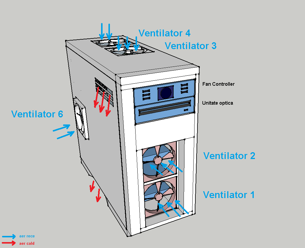 Ventilatorul 3 trebuie setat la 15-25%. Ventilatorul 5 trebuie sa scoata aerul cald din partea de sus a carcasei.